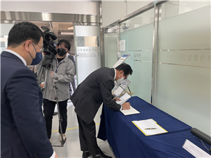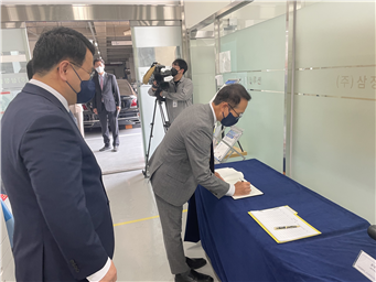 (방명록에 서명하는 미주 한인상공회의소 연합회 최형렬부회장)
